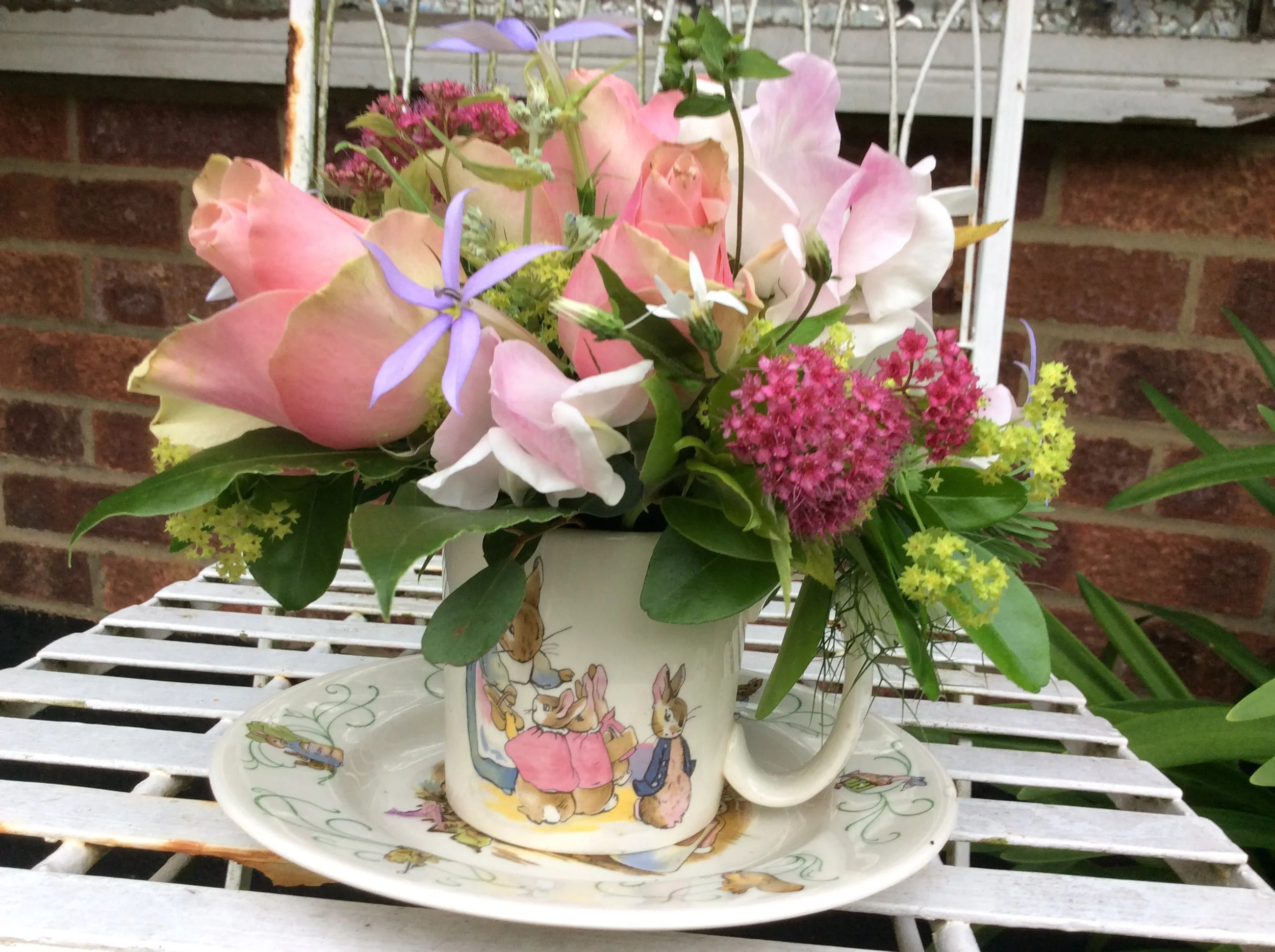 Posies in vintage baby cups from £15- a perfect gift for a new baby and mother